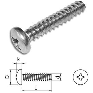 Size 4.2 (No.8) Phillips Pan Head Tapping Screw Dog Point (B) DIN7981 FH (A2)Stainless
